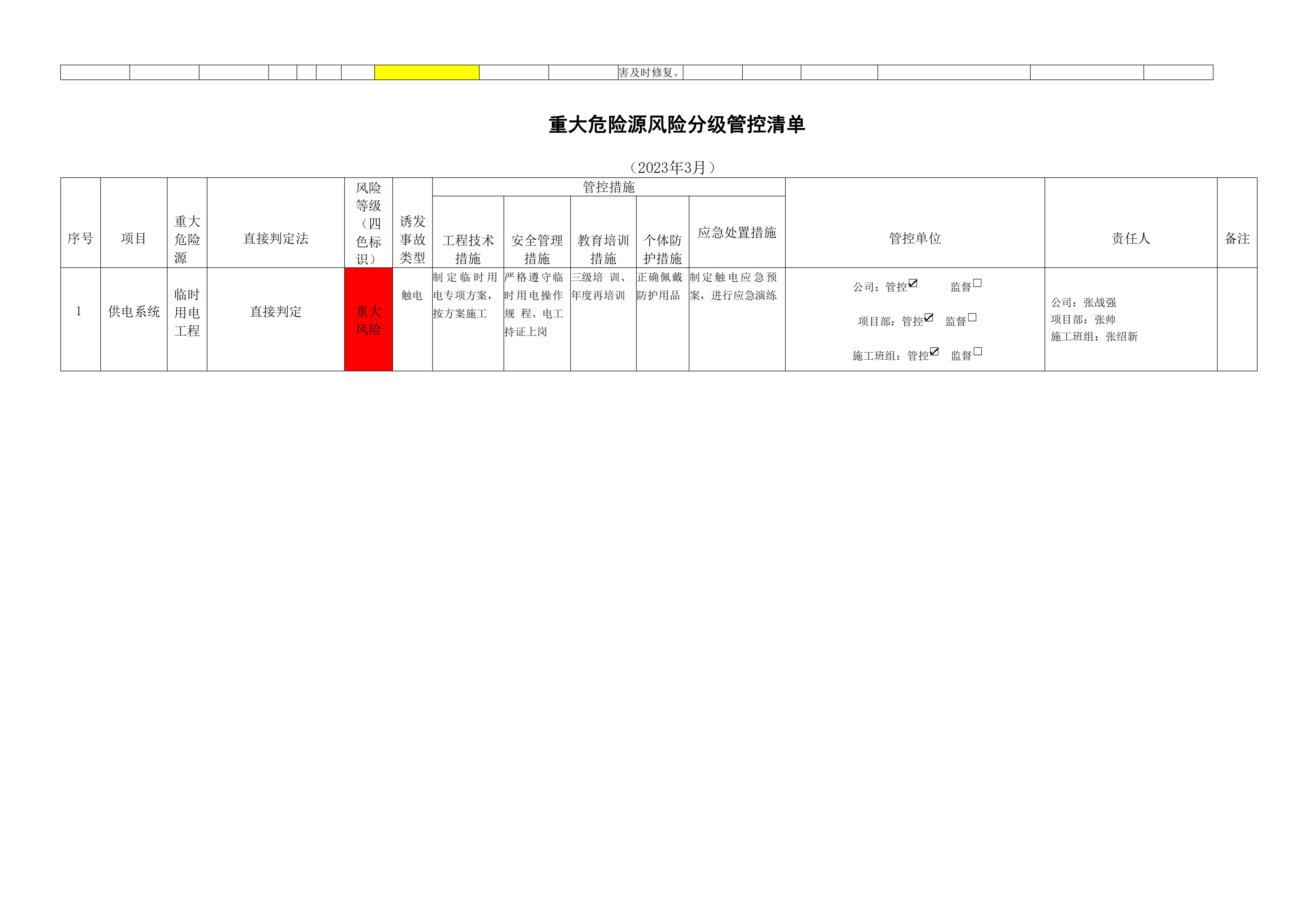 洛寧縣洛河生態(tài)治理三期危險源風險分級管控清單(3月)